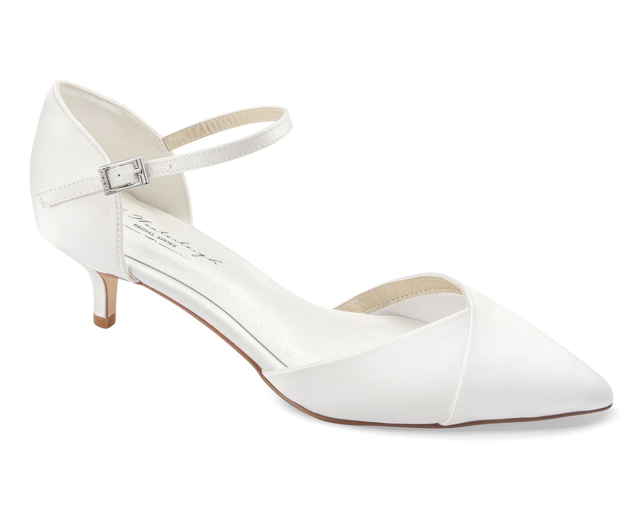 Unser Celine-Brautschuh ist ein ganz besonderes und trendiges, handgefertigtes Modell. Aufgrund seines niedrigen, aber schlanken Absatzes empfehlen wir ihn für Gartenhochzeiten.