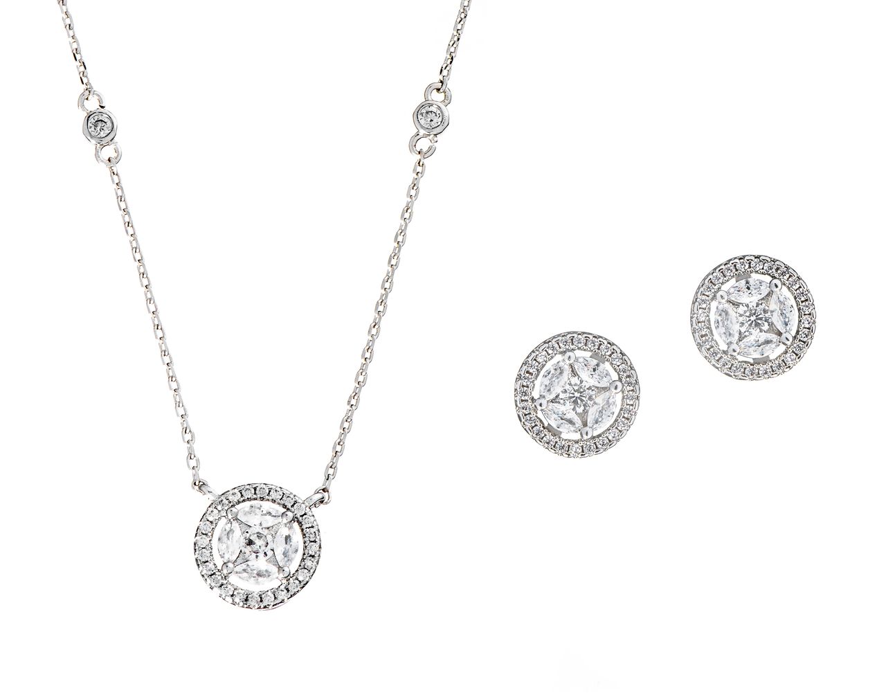 Rhodium-plated jewellery set made with Cubic Zirconia crystals.